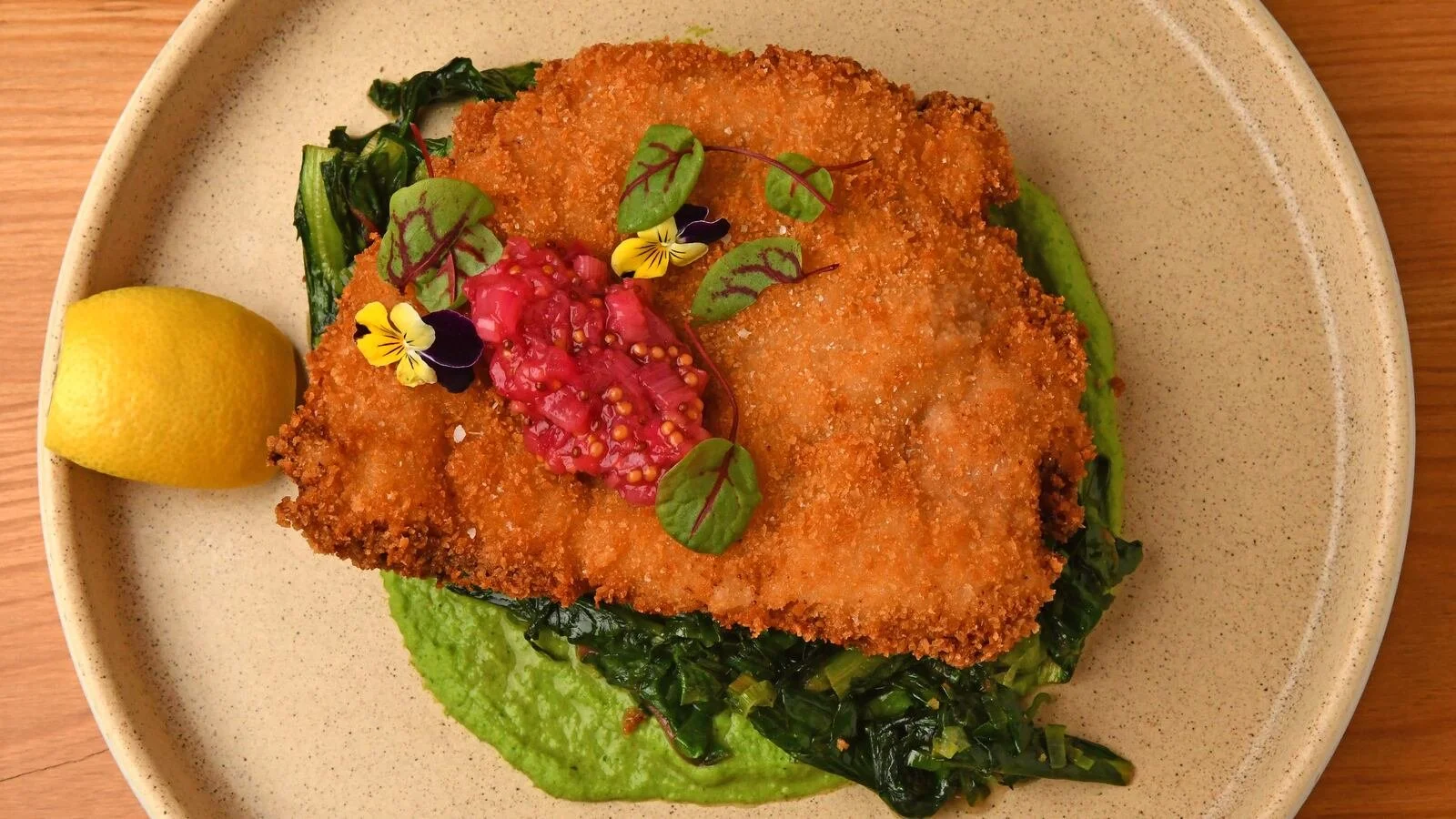 Make Miller Union’s Pork Schnitzel with Minted Peas and Rhubarb Chutney